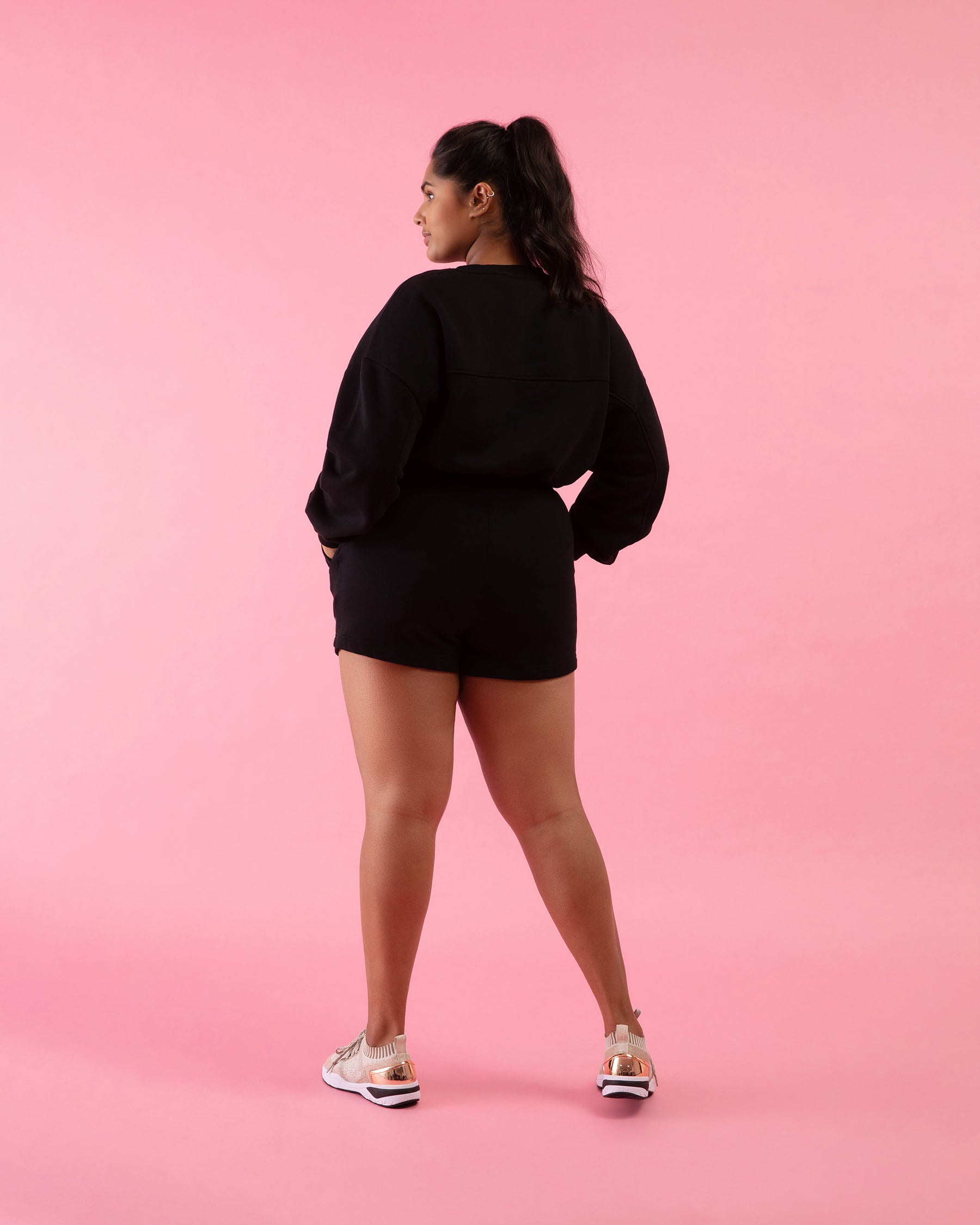 Black Ribbed Biker Short Romper Pinkblush